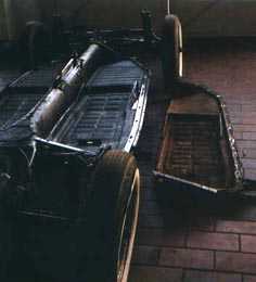 Nun begann die eigentliche Arbeit: Die Karosserie. Kurz gesagt wurde alles von den Einstiegsholmen an etwa 15 cm hoch abgeschnitten. Als erstes arbeitete ich an dem Vorderbau. Die Reserveradwanne, die Spritzwand und die beiden Endspitzen mussten erneuert werden. Aus Reparaturblechen wurden die entsprechenden Teile ausgeschnitten und eingepasst. Außerdem mussten die Radäufe vor den A-Säulen teilweise und die hinteren Endspitzen gewechselt werden. |